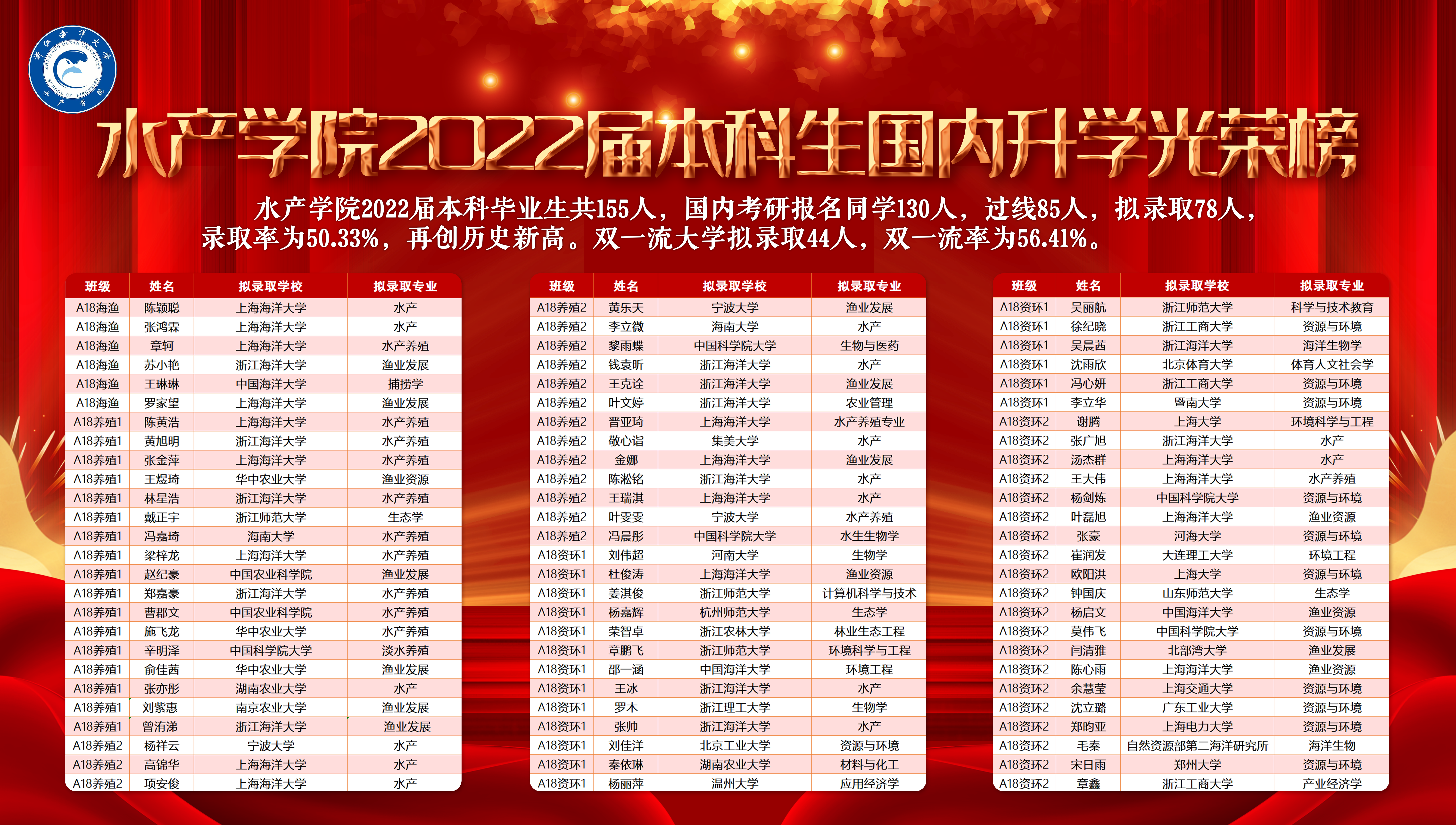 世界水草造景大赛(ADA – Nature aquarium),国家大学生挑战杯学科竞赛、浙江省大学生挑战杯学科竞赛、浙江省大学生海洋知识竞赛、全国英语竞赛、全国英语演讲比赛、浙江省数学建模竞赛、浙江省大学生物理竞赛等。