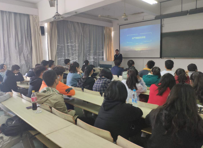 分享会中,王小军学长从自身学习、工作经历出发,与同学们分享了如何做好大学四年规划、水产养殖行业情况以及自己的创业之路。指出无论从事何种职业,都要有吃苦耐劳精神,无论什么工作,都需要提升专业技能。同时强调要及早进行定位,明确今后发展方向。分享会最后,王小军校友与在座学生进行了互动交流。