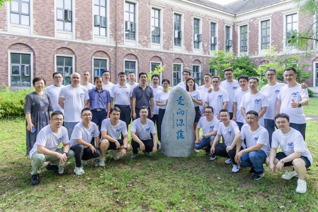 会后,全体人员来到国家海洋设施养殖工程技术研究中心门口,举行文化石捐赠仪式。高鹏、虞浩臣和班级校友代表一起为文化石揭幕。文化石高约1.5米,上刻“走向深蓝”四个大字,蕴含着校友对母校的美好祝愿。