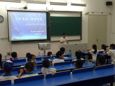 首先,队员们为小朋友和辅导员发放宣传扇、《倡议书》等,并讲解最新渔业法律法规,以提高小朋友遵纪守法的意识。有一部分小朋友看到《倡议书》后说道:“我今天晚上要给妈妈看,告诉妈妈以后不要买小鱼吃了。”然后,实践团队员就休渔、休渔期、护渔等方面的知识进行讲解,接着用题目竞答的方式使小朋友们加深对知识的理解。