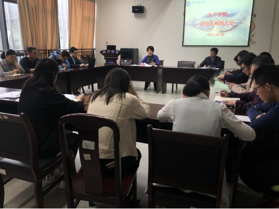 2021年4月28日,我院在海科楼263召开研究生教育大会,会议由张院长主持,参加会议的有我院的研究生导师、海洋与渔业研究所的导师和相关管理人员。