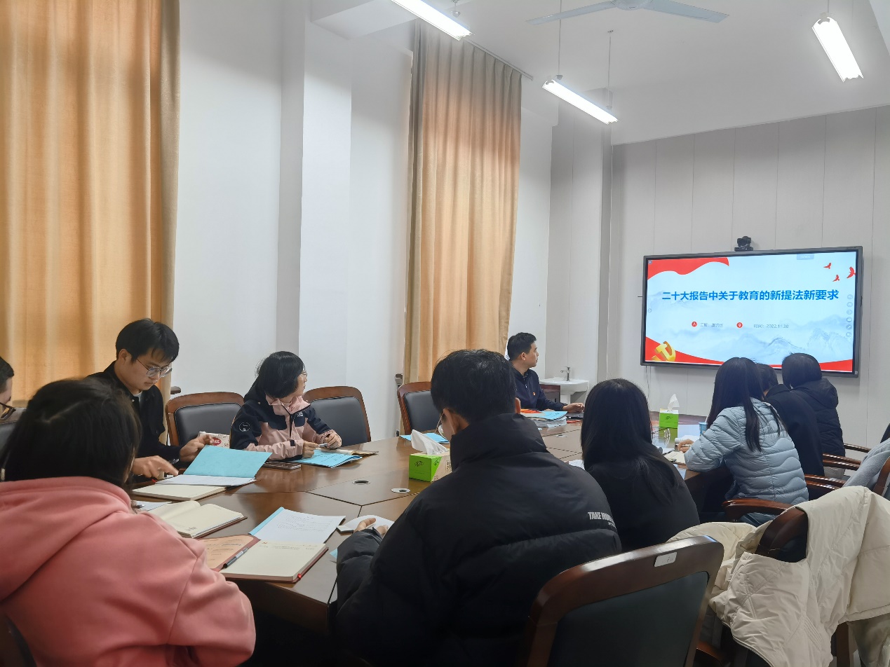 为深入学习宣传贯彻党的二十大精神,组织动员全院师生党员干部把思想和行动统一到党的二十大精神上来,把智慧和力量凝聚到完成党的二十大确定的各项任务上来,11月30日下午,yl9193永利集团党委书记虞浩臣以“二十大报告中关于教育的新提法新要求”为题,围绕党的二十大精神和yl9193永利集团实际工作,为学院党政班子成员和全体党支部书记上了一堂深刻而生动的主题党课。