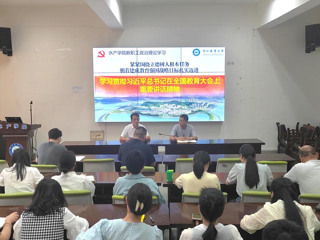 会议强调,这次全国教育大会是对新时代新征程加快建设教育强国的一次重要会议,在我国教育发展史上具有十分重要的里程碑意义。全院上下要把学习宣传贯彻习近平总书记重要讲话和全国教育大会精神作为当前和今后一个时期重大的政治任务,持续深入学习贯彻习近平总书记关于教育的重要论述和关于教师队伍建设的重要指示批示精神,并把学习习近平总书记在全国教育大会上的重要讲话精神同习近平总书记在浙江工作期间两次视察学校的重要讲话精神有机结合起来,紧密结合学习贯彻党的二十届三中全会精神和省委十五届五次全会精神,以“钉钉子”精神抓好学院2024年各项重点工作的推进落实,扎实推动全国教育大会精神落地生根。