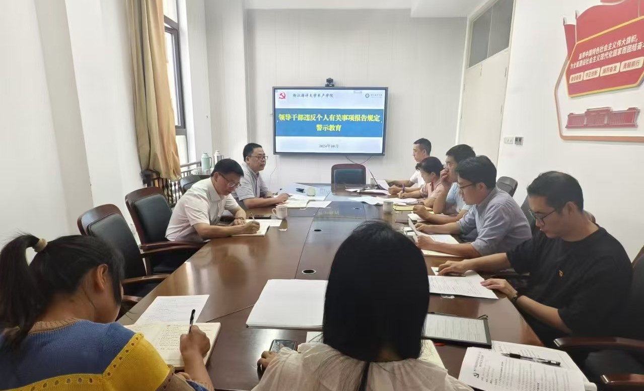 会上,学院党委书记薛利建强调,学院党委把贯彻执行《条例》《规定》作为履行全面从严治党主体责任的一项重要政治任务,列入议事日程,切实加强组织领导,认真抓好学习宣传和贯彻落实。学院党委副书记、纪委书记付宗国强调,学院领导干部要带头执行,切实增强纪律意识、规矩意识和组织观念,切实做到忠诚老实,严格按照《规定》要求如实报告个人有关事项,自觉接受组织监督。