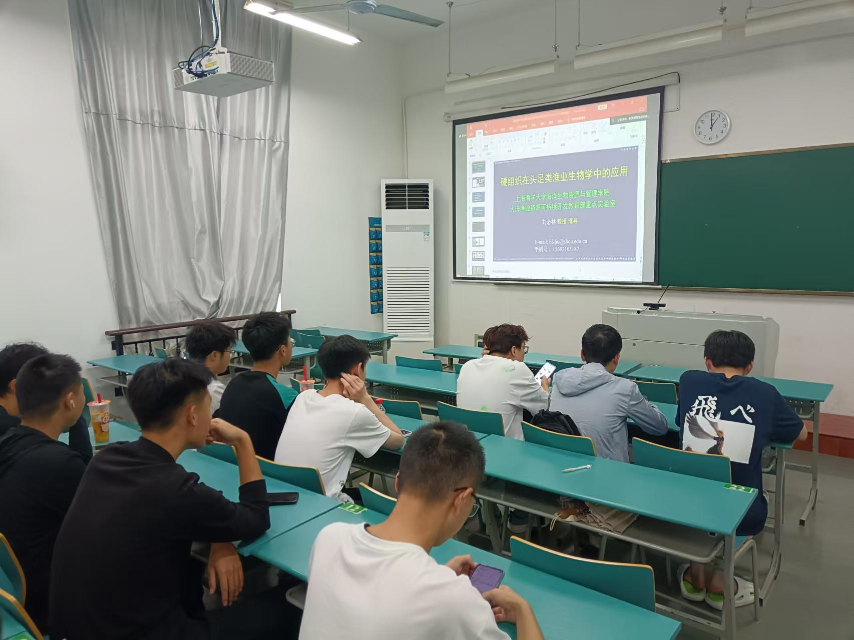 通过刘教授介绍了头足类的硬组织种类,讲授了有关硬组织的形态、微结构、微量元素以及碳氮稳定同位素的应用研究,同学们了解到硬组织在头足类渔业生物学中具有广泛的应用价值。角质颚和耳石等硬组织为头足类的年龄和生长研究、摄食生态和栖息环境评估以及渔业资源评估和管理等提供了有力支持。
