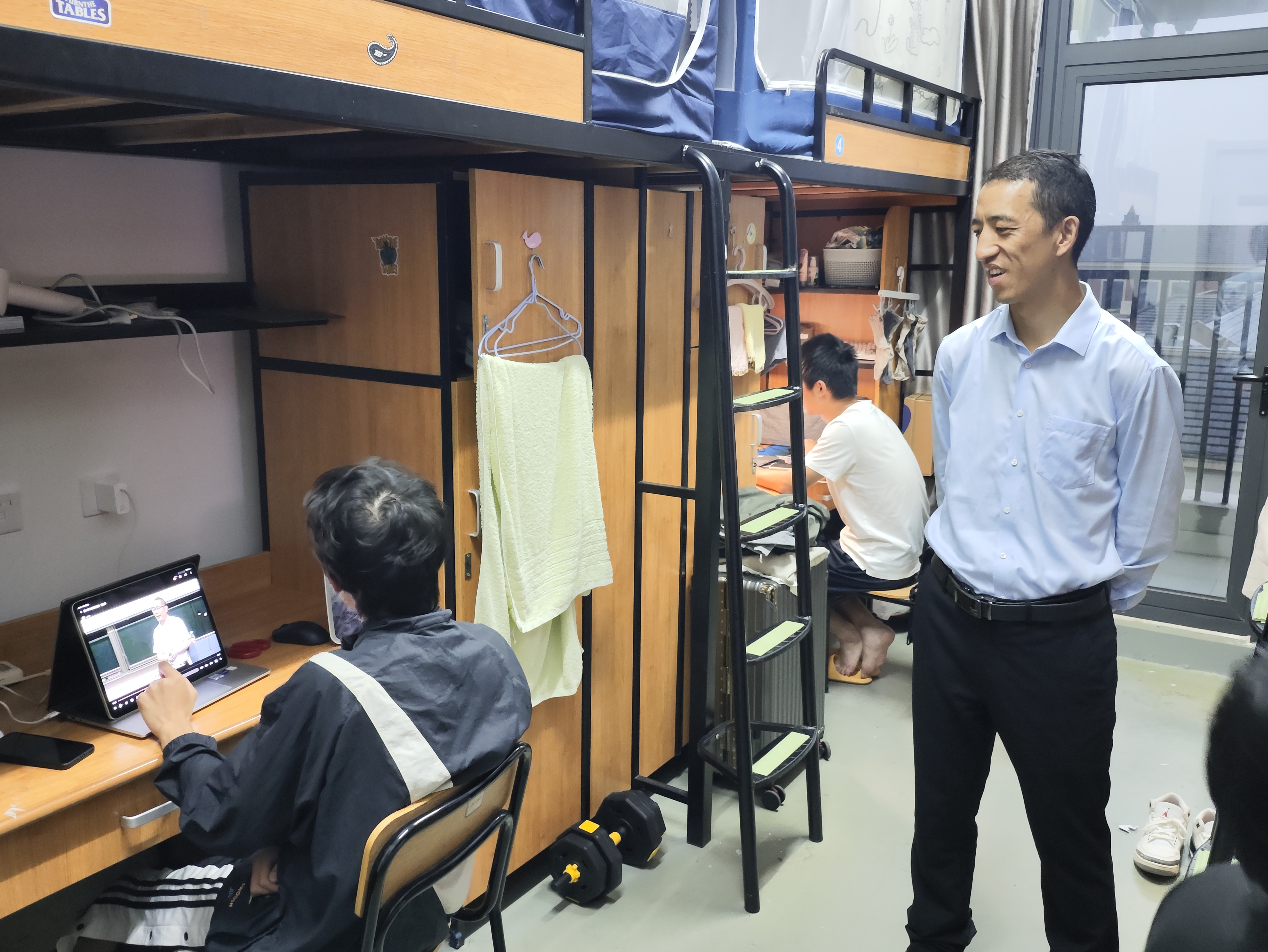 在走访过程中,付宗国不仅细致询问了学生的生活状况,还深入了解了同学们在台风期间的学习与生活安排,确保每位同学都有足够的准备和正确的应对措施。付宗国特别强调了防范诈骗的重要性,提醒同学们在面对花样百出的诈骗手段时,要保持高度警惕,增强自我保护意识,避免财产损失。