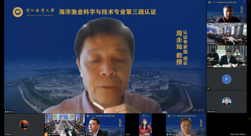 周永灿教授代表专家组在反馈会上介绍了此次认证考查的总体情况。专家组认为,海洋渔业科学与技术专业作为国家级一流专业建设点,办学历史悠久,办学底蕴深厚;坚守“三农”情怀,服务国家海洋渔业事业;办学理念先进,教改成果丰硕;师资力量雄厚,实践教学体系完备;专业依托学校区域位置办学优势,确立了多元化高水平人才培养目标,为我国海洋渔业生产、教育、科研和管理等部门输送了大批优秀的高素质人才。