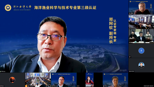 钱卫国代表认证专业,作自评报告的补充说明。他汇报了海洋渔业科学与技术专业的总体概况、师资队伍、教学改革举措、培养方案、课程体系以及特色育人等方面的内容。