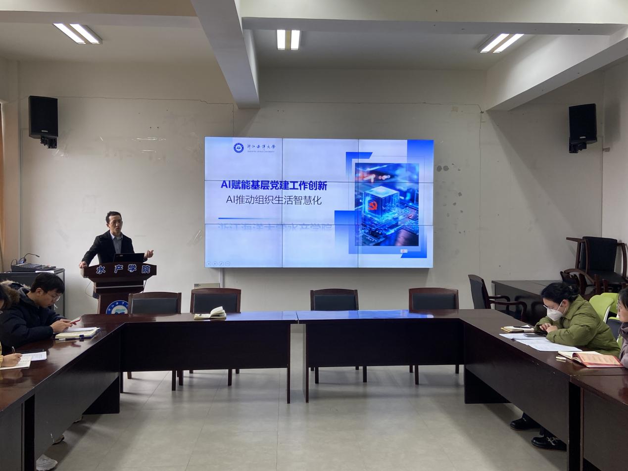 付宗国进行题为《AI赋能基层党建工作创新》的培训,强调要贯彻学校2025新春第一会精神,推进人工智能赋能党支部工作,发挥“行-师-研-本-地”一体化联合、“系-党-团-学-班”一体化推进的优势。融合舟山地方需求,通过“产学研合作”和“校企地共建”等模式,促进学院与地方的良性互动,使党建工作更好地服务于地方海洋经济的发展。