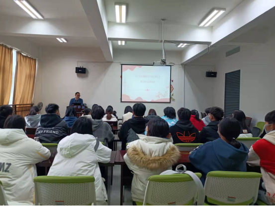 支部书记徐双迪老师介绍党的十九届六中全会是一次具有里程碑意义的重要会议。全会通过了《中共中央关于党的百年奋斗重大成就和历史经验的决议》,这是新时代中国共产党人牢记初心和使命,坚持和发展中国特色社会主义的政治宣言,是以史为鉴、开创未来、实现中华民族伟大复兴的行动指南。不忘昨天的苦难辉煌,不愧今天的使命担当,不负明天的伟大梦想,总结党的百年奋斗的重大成就和历史经验。徐双迪老师指出,作为新时代的大学生党员,任重道远,深入学习贯彻习近平新时代中国特色社会主义思想,把“请党放心,强国有我”的誓言内化于心、外化于行,不断奉献、报效祖国。