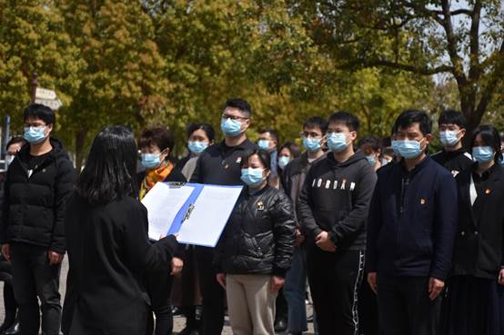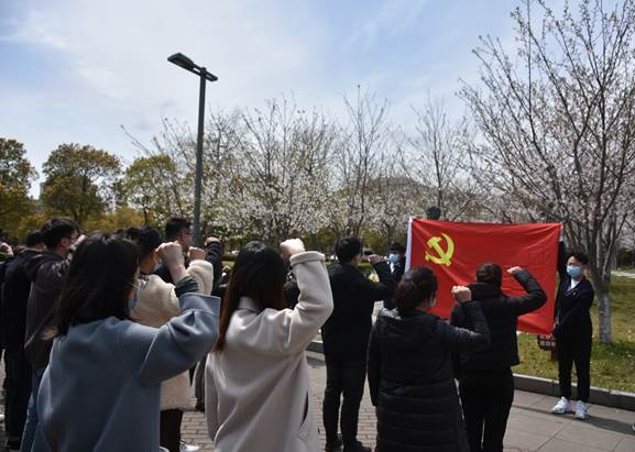 最后,全体师生党员在学院院长、党委副书记王迎宾同志的带领下重温入党誓词。