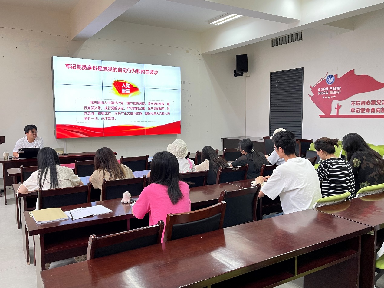支部书记盛剑围绕“牢记党员身份不能忘”这一主题,从三个方面讲授党课:一是为什么要时刻牢记党员身份。盛剑强调牢记党员身份是党员的自觉行为和内在要求、是党的优良传统和战斗力的重要保障、是开展创优争先活动的具体体现。二是牢记党员身份,把握党员特征。政治上绝对可靠是共产党员最显著的标志,思想上绝对纯洁是共产党员最优秀的品质,能力上非常过硬是共产党员最应有的素质。三是牢记党员身份,尽好党员义务。在政治上讲忠诚、在组织上讲服从、在行动上讲纪律。