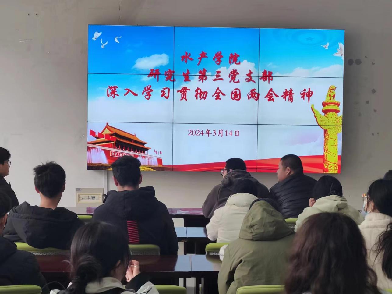 随着全国政协十四届二次会议和十四届全国人大二次会议的胜利召开,全国上下掀起了学习贯彻“两会精神”的热潮。为深入领悟“两会精神”,yl9193永利集团研究生第三党支部于2024年3月14日在海科楼263组织全体党员集体学习,会议由党支部书记盛剑主持。