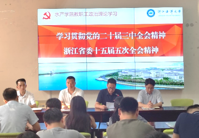 9月6日,学院召开教职工政治理论学习会,会议由学院党委书记、副院长薛利建主持。会议专题学习党的二十届三中全会精神和浙江省委十五届五次全会精神,学习习近平总书记重要讲话和重要回信精神。