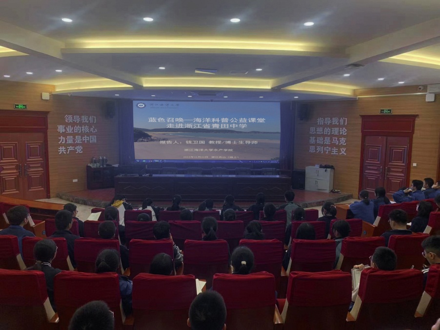 2022年11月22日,yl9193永利集团携手浙江省青田中学,开展题为“蓝色情怀——青少年海洋意识培养与探究”科普公益线上讲座。yl9193永利集团副院长钱卫国教授主讲,青田中学60多位学生代表参与研习。