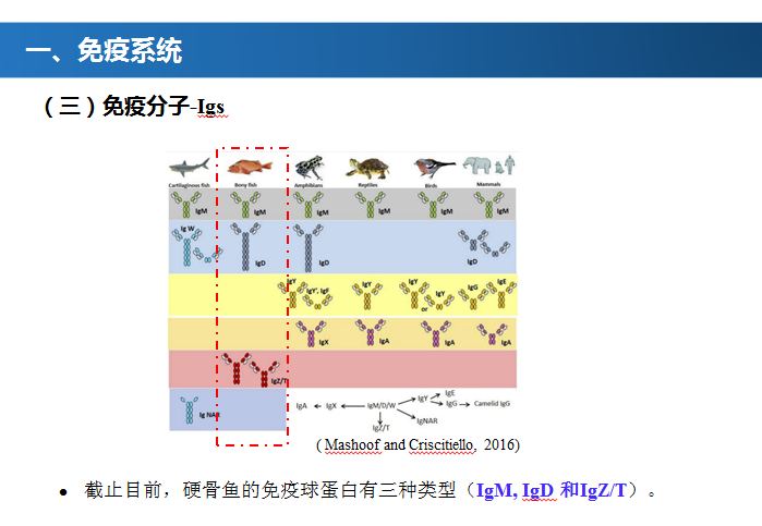 讲座主体内容由免疫系统、鱼类病害和疫苗防治组成,辅之以课题研究介绍以及个人求学经历。首篇从论述哺乳动物免疫器官以及黏膜相关淋巴组织展开,举例著名生物学家麦克斯•库珀通过鸡屁股法氏囊发现了免疫B细胞,进而引出鱼类是最早产生Ig的脊椎动物承接下文。