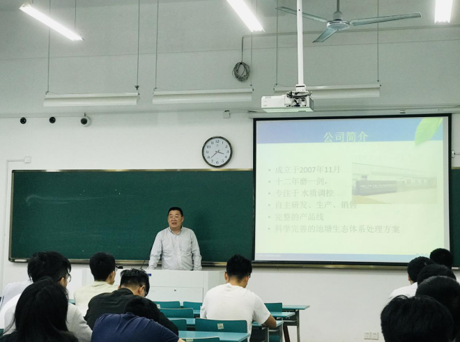 上海一泓生物技术有限公司负责人主要介绍公司情况、未来发展规划等,强调公司需要动手能力强,有丰富的塘口经验,能帮客户解决实际问题的基础技术型人才。同时也需要在某个领域的尖端技术型人才以及忠诚,勤奋,能独当一面的销售型人才。宣讲会最后就学生关心问题进行了互动。
