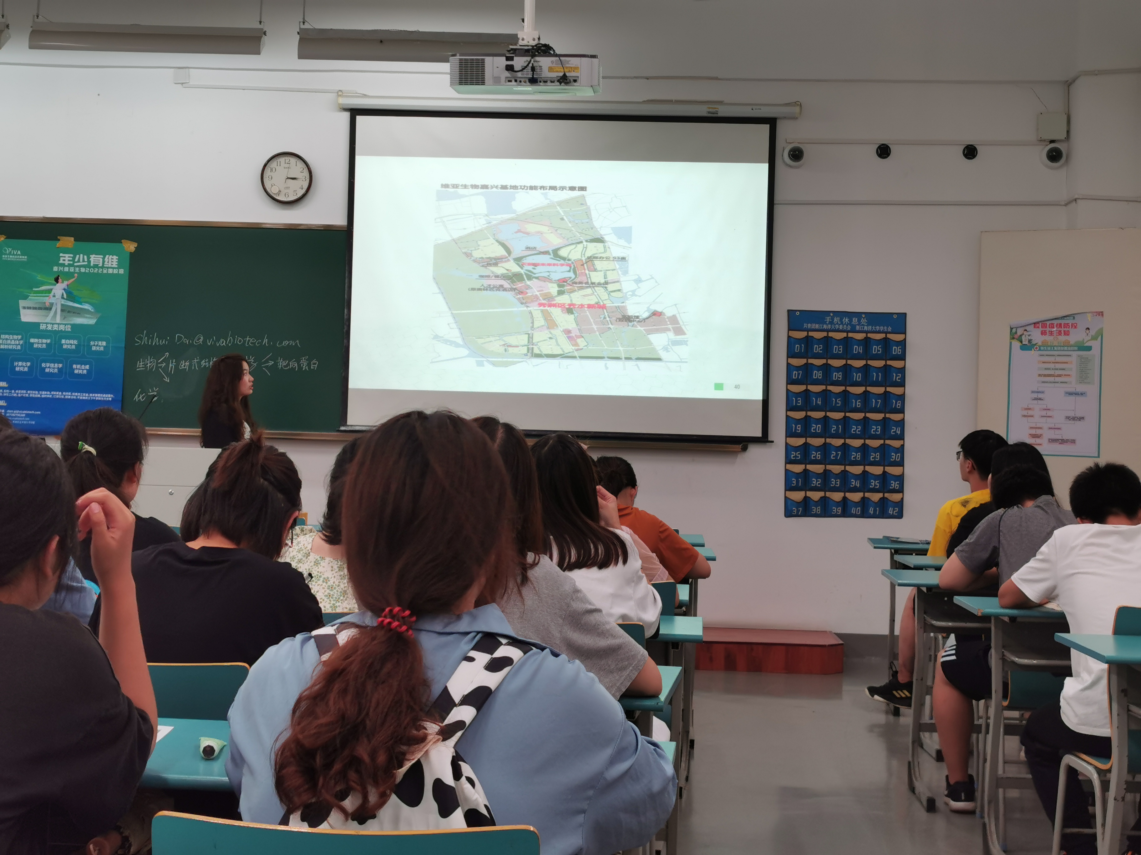 宣讲会上,维亚生物科技(上海)有限公司负责人介绍了公司发展概况、公司文化理念、发展通道、福利待遇等内容。宣讲会后,就同学们关心的问题进行了交流与互动。