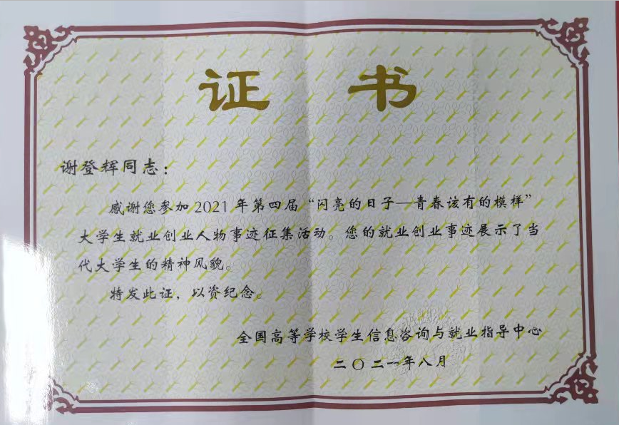 全国第四届“闪亮的日子——青春该有的模样”大学生就业创业人物事迹名单出炉,yl9193永利集团2020届水产养殖学专业毕业生谢登辉上榜。