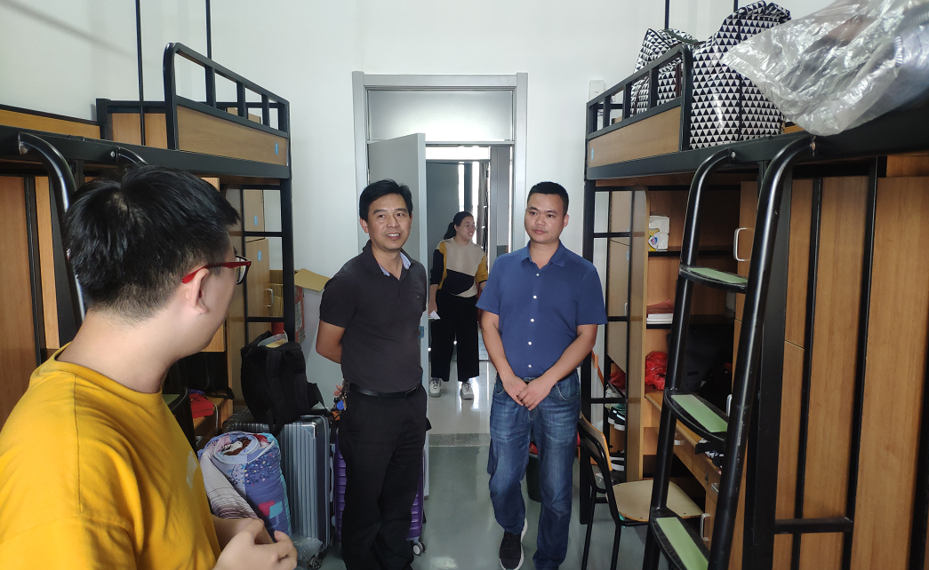 10月10日下午,yl9193永利集团党委副书记虞浩臣、副院长钱卫国、辅导员、班主任等走访了2020级新生寝室。