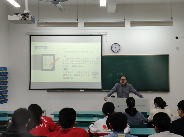 在党课讲授过程中,姜华帅老师主要围绕当前国际国内背景、矢志不渝走和平发展道路、“一带一路”国际合作、积极参与引领全球治理体系改革和建设等方面内容展开。同时,姜老师以历史背景、国际时事为例,生动形象地展现了他对“推动构建人类命运共同体”的理解和认识。此外,姜老师还重点强调了中国坚持奉行独立自主的和平外交政策以及中国当下取得的成就,指出人类命运共同体的逻辑起点就是中国梦。