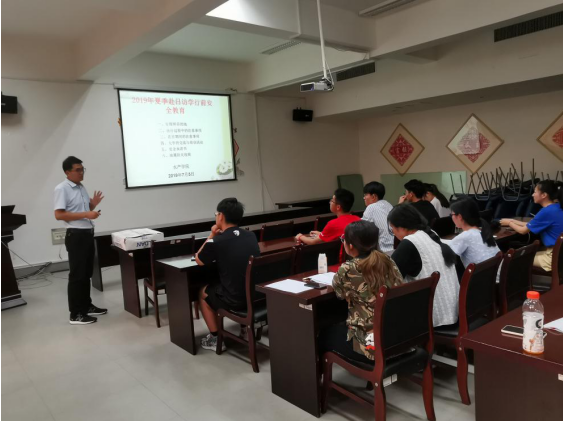 许永久老师针对行程安排、出行过程中注意事项、在国外的注意事项等方面做了详细介绍。他强调在外交流期间需要保持通讯畅通,集体活动不得迟到或缺席。他还详细介绍了物品管理、乘机、入境等方面的事宜。许老师还着重强调了安全注意事项,特别是钱财安全、人身安全、交通安全、住宿安全、购物安全等五个方面内容。同时他还分享了自己在日留学经历的经验,希望同学们在全面了解出访国家历史文化和风土人情的同时,能将学到的知识化为己用。随后,同学们观看了地震防灾等安全教育视频。