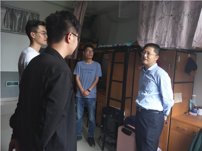 5月25日中午,永利集团官网党委委员许文军教授走访了yl9193永利集团学生寝室。