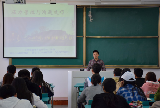 10月19日中午,yl9193永利集团和食品与医药学院在公共教学楼234举行“青马工程”培训班之心理建设讲座。讲座由心理健康教育咨询中心杨盈老师主讲,意在提高学生干部的压力管理能力、沟通技巧。yl9193永利集团团委书记徐双迪主持本次活动。