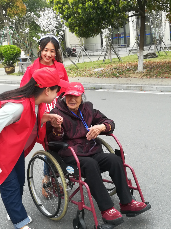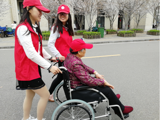 午间,志愿者们在北二门集合,排队等候老人们的到来。颐养院的老人们由于腿脚不方便,子女不在身边,很少有机会能够外出赏玩。借此机会,在樱花盛开时,志愿者们陪同着老人赏花、游园,看到校园里盛开的烂漫樱花,老人们的脸上也都挂满了微笑,纷纷在樱花树前拍照留念。部分老人由于年迈腿疾只能靠轮椅出行,但他们依旧不减赏花的热情,激动地握着志愿者的手,欣喜之情溢于言表。头戴着粉红色樱花花环的王奶奶赞叹道:“我平时很少出颐养院的大门,今天能来这里看樱花很开心。”志愿者们则表示:“陪爷爷奶奶的时间很欢快,连樱花都跟平时看到的色彩不一样,更加温馨了。”期间,志愿者们还准备了热茶和点心供老人们享用,稍作休息后,老人们沿途又赏起了樱花,花美人也美,目光所及之处都是老人们的笑颜。其中,也有几对老夫妻携手赏樱花,相濡以沫大半辈子,依然将鲜花献于老伴。取一樱花瓣插入你发中,满眼尽是你笑颜,执子之手,赠一片花海与子偕老。活动近于尾声,老人们意犹未尽,仍不舍离去,上车后的老人们仍是满意归去,樱花之情留于心底。