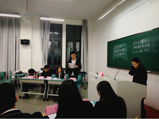 2017年11月12日晚上六点,“名实杯”辩论赛决赛在长峙校区公共教学楼235举行。参加此次比赛是yl9193永利集团A17资环1的四位辩手与食品与医药学院的A17药学2的四位辩手,辩论议题为网络匿名是否有助于公众议题的讨论。