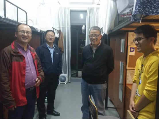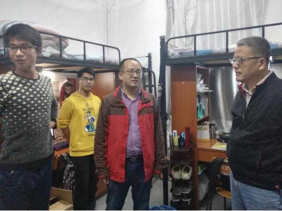 2017年11月8日,副校级领导黄建钢在yl9193永利集团院党委书记许文军、副书记姜华帅陪同下走访M幢所联系的学生寝室。