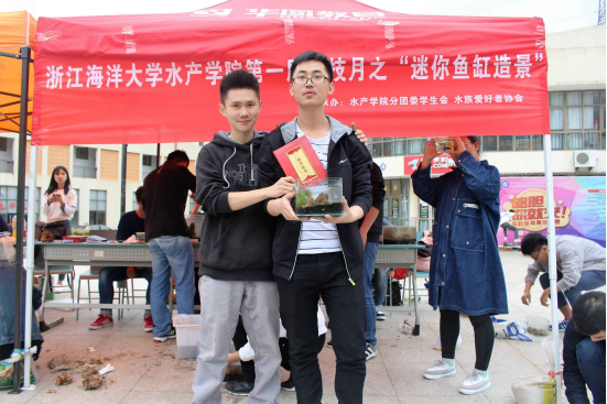 随着五月的到来,天气也越发炎热,在这个时节一场与水有关而且新颖独特的鱼缸造景活动引来了众多同学的关注与参与。活动内容也是极为有趣且考验动手能力的,来参赛的同学们首先一人或两人组成了一个小组,之后在牟毅老师一对一的指导下,开始尝试鱼缸造景。同学们用新奇的目光打量着面前摆的鱼缸和各种材料,试探性的把沙石铺在鱼缸底部,沙石铺好后在沙石上盖满水草泥,同学们互相学习,互相借鉴,基础打好后渐入佳境开始下一步注水,同学们全神贯注的盯着鱼缸小心翼翼的把水缓缓注入,现场陷入一种令人兴奋的安静中,让围观的工作人员都忍不住想要屏息,之后就到了整体效果的关键步骤,同学们用镊子轻轻地夹起水草,植入水草泥中,每个水草的位置都经过了同学们的慎重考虑,经过同学们的设计每一个鱼缸都美轮美奂,真犹如一个迷你的海底世界。最后同学们等待着水中悬浮的沙子沉下,水变清澈,便把鱼放入水中了。鱼儿一条条游来游去活蹦乱跳,一个迷你的鱼缸便这样完成了。同学们看着自己亲手创作的作品都露出了自豪的笑容,内心被成就感填满。