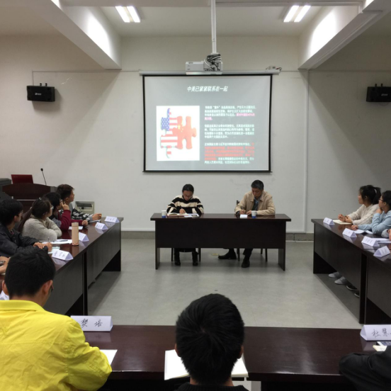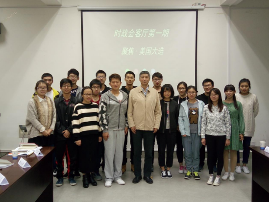 姜华帅老师首先为大家放映了PPT,同时讲解了美国刚刚大选后的政治局势,并且就前几任美国总统对中国的态度、治国理念和外交手段一一加以分析,讲述了他自己对美国下一任总统特朗普的一些看法。随后,将时间交给同学们,大家自由发言,畅谈自己对特朗普和希拉里的看法,有同学反对特朗普“不顾政治正确,美国利益至上”的理念,也有同学认为希拉里的“邮件门”事件就代表了她为人虚假,必不可能成为美国总统。大家畅所欲言,讨论各自的看法,气氛十分热烈。