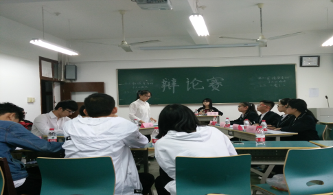 首先主席致词,第一轮辩论赛的辩题是:新闻报道中告知受众真相和尊重当事人隐私哪个更重要。由正方A16药学2与反方A16资环进行辩论。在八位参赛者和三位评委的自我介绍完毕后,主席宣布辩论正式开始。正方和反方都表述了自方的观点,接着进行答辩环节,这个环节也是最激动人心的一个环节,各方辩手们配合默契,她们妙语连珠,当仁不让,她们旁征博引,将整个比赛带入了一个又一个高潮。然后正反方各自作小结陈述自己的观点,最后一个环节由评委向正反方提问,再由评委商量一致后,对该场辩论赛进行了一个总结。经过了一个多小时的激烈辩论,A16资环最终获得了胜利!