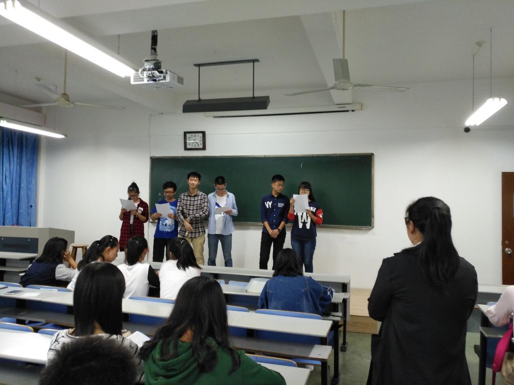朱晶婷同学曾获第十六届“新生杯”演讲赛院一等奖、校优胜奖。她首先向我们分享了她自身的参赛经历,强调了重在参与这一观点。其次,着重说明了一些演讲过程中容易出现的问题,同时请部分同学上台朗诵部分演讲稿,逐个分析这些同学朗诵过程中出现的问题,以便参赛同学能够清晰的认识到自身的不足。还分析了yl9193永利集团与其他学院在演讲比赛准备过程中的差距,为参赛者定下了更高的目标——进入校级演讲比赛。最后,朱晶婷一一解答了每一位参赛者提出的问题。解疑环节结束后,各位参赛者进行对出场顺序的抽签。