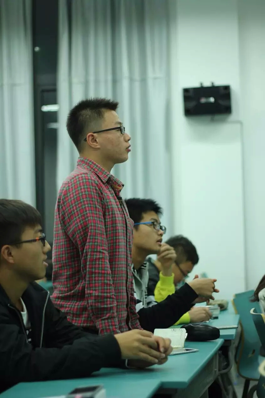 会议开始,第一位上台分享的是杨利军学长,他首先以互动聊天的开场活跃气氛,台下同学也被学长的直爽性格所感染,渐渐提出自己心中对挑战杯创业大赛的疑惑,杨学长以轻松欢快的回答解决了同学们的不解。然后,杨利军学长着重介绍了参加挑战杯的目的和意义,同时向在座的同学讲解了什么是商业计划书,如何打造一份优秀商业计划书和参加挑战杯的基本流程。据杨利军学长介绍,重视”格局”是关系到获奖的重要因素。一路走来,学会了很多。大学就应该多出去走走。其次王震华学长上台分享了他的经验。王震华学长在团队里主要负责包装设计PPT的,所以王学长就着重强调了计算机水平就决定了项目计划书包装设计的好坏。一份精美却简明扼要的,直抓重点的优秀PPT会给整个项目加分不少。重视日常的每一件小事,做好它,再加上认真重视的态度,就是最大的收获。