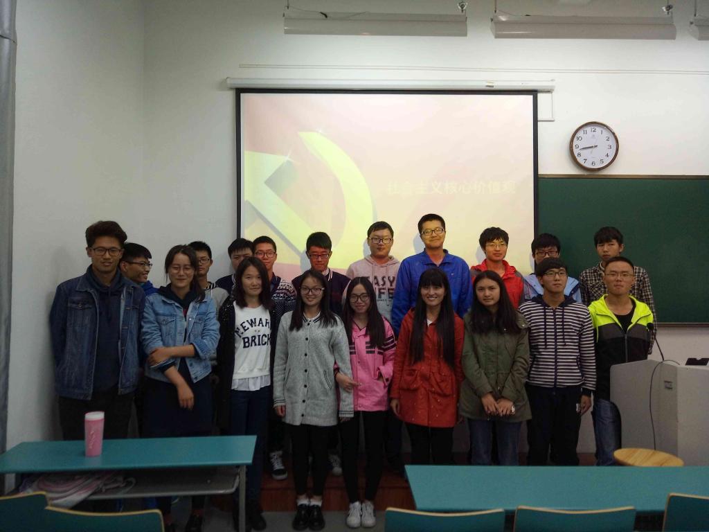 会议伊始,副书记徐元凯致开场词,介绍此次例会的主要程序。随后开始会议的第一项内容,由政治宣传部部长赵建军带领与会全体人员共同学习了“社会主义核心价值观”的重点内容、精神要点、践行路径与宣传教育的重要性。会议的第二项内容是由副书记范佳明向各部门新届干事了解对其部长的评价,此过程为达一定的准确性与可信度,由各部长暂时离场,给部门干事一定的空间提出意见。最后是会议的第三项内容,由副书记以及各部门部长践行一句话为核心价值观代言的活动,副书记及各部门部长在纸上写下自己学习核心价值观后的感悟以及践行价值观的决心,并分别拍照。