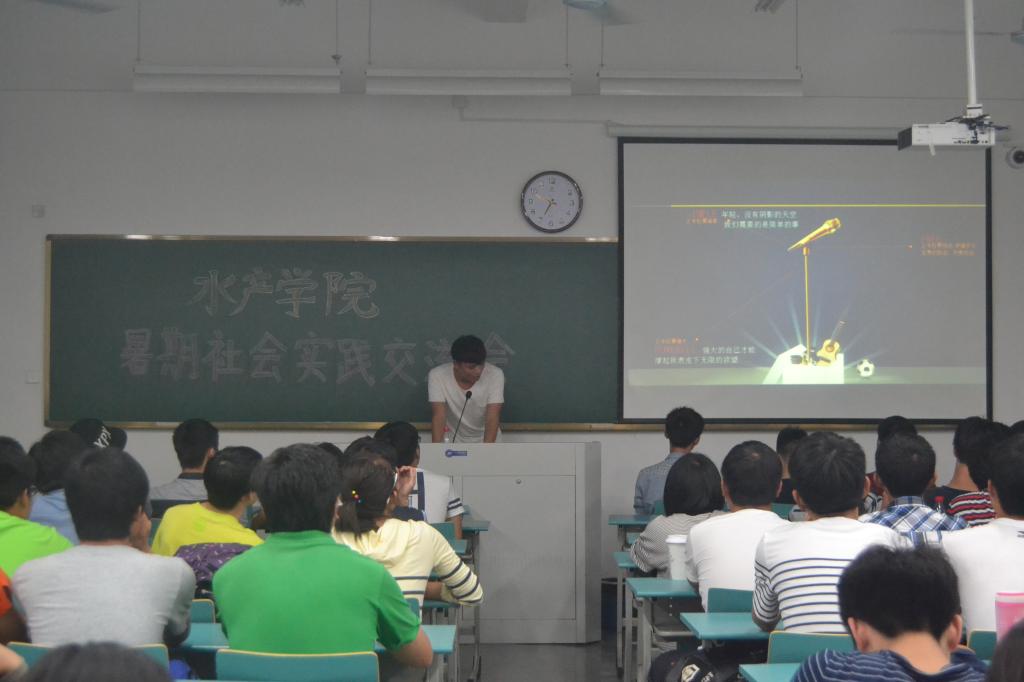 随后“一改三整治”团队葛超峰队长讲述了他们团队实践的具体行程安排,在水柏年老师的带领下,他们走基层,访渔民,切身体会渔民的艰辛生活。同时他们还发起了与渔业部门关于一改三整治问题的座谈会。当被问及经历这次实践有何收获和感悟时,他回答道,社会实践让他们体会到课堂上无法体会的精彩,对渔业有了更深的认识。