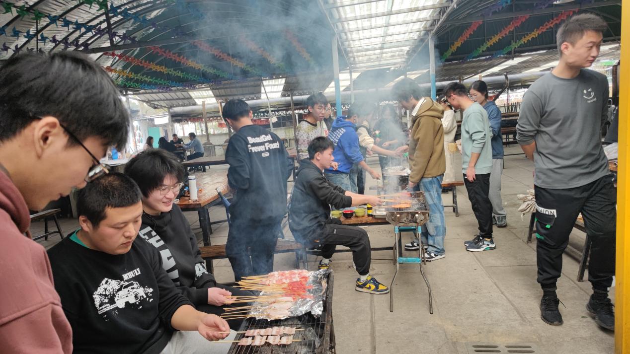 阳光灿烂,同学们充满期待脚步。结伴来到目的地后,大家就开始动手劳作,一场别开生面的劳动场景映入眼帘。有的生火炒菜,有的浇油撒孜然等。烘烤的香味,飘散的炊烟,红红的炭火,一切都让同学们兴奋不已,充满了烟火气息。