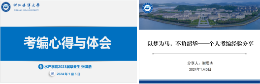 考编代表张淇浩和谢思杰通过考前准备、复习方法、归纳与总结等方面讲述了如何考编上岸的过程,并给学弟学妹们推荐了相关公众号和网站。