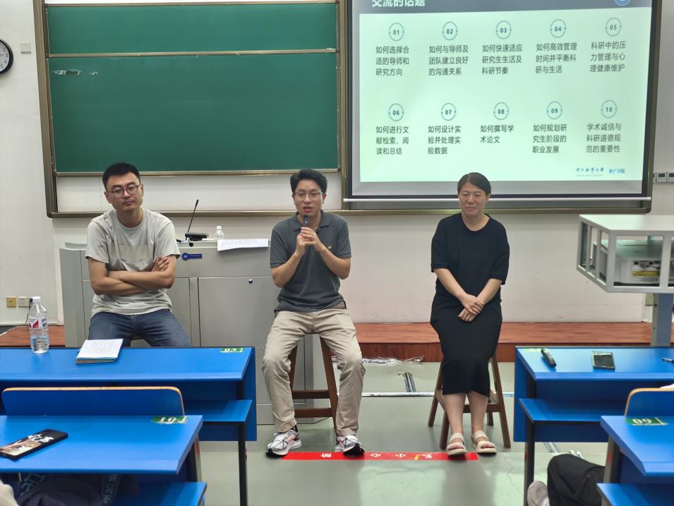 陶震对2024级研究生新生的到来表示了热烈欢迎,报告围绕“如何选择合适的导师和研究方向、科研中的压力管理与心理健康维护、如何进行文献检索阅读和总结、学术诚信与科研道德规范的重要性”等方面展开。并与在场的新生展开了详细交流。