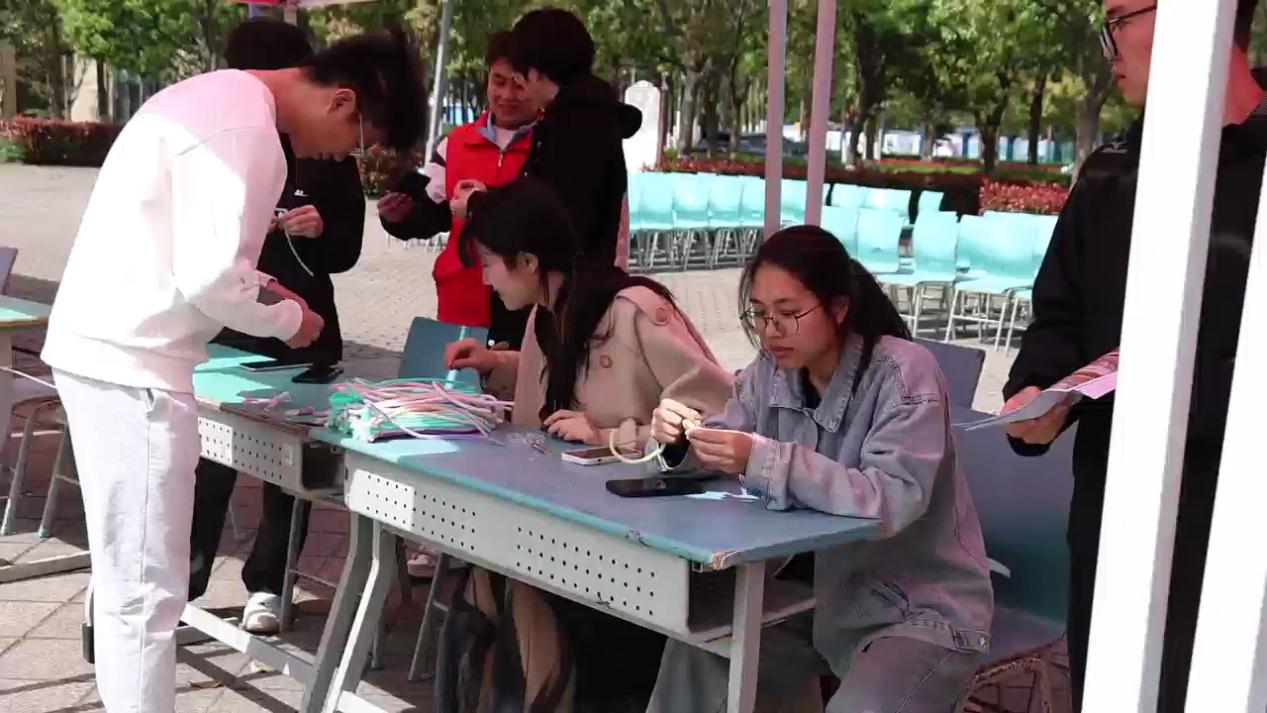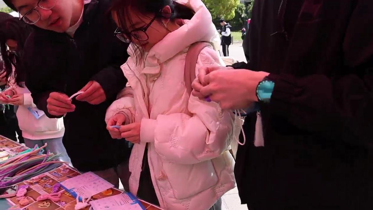 扭扭棒旁边还设置了资助知识问答,同学们通过答题的方式,了解了学校的各种资助政策,加上志愿者们的生动解读,也更加懂得了资助育人的意义,让“资助”不再是冷冰冰的条文,而是像扭扭棒一样,能实实在在“编织”出助力梦想成真的温暖力量。