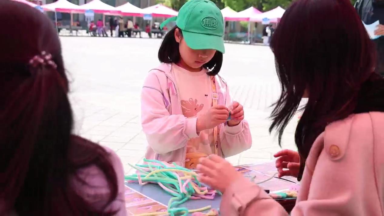 摊位前,同学们根据制作图解,将彩色扭扭棒在手中弯曲、缠绕、拼接,简单的动作间,小鱼、水母等海洋生物逐渐成形,活灵活现,连路过的小朋友都忍不住驻足,跟着大家学起了“扭棒魔法”。经过大家的精心制作,摊位前于是就出现了各种五颜六色、活泼可爱的海洋生物。