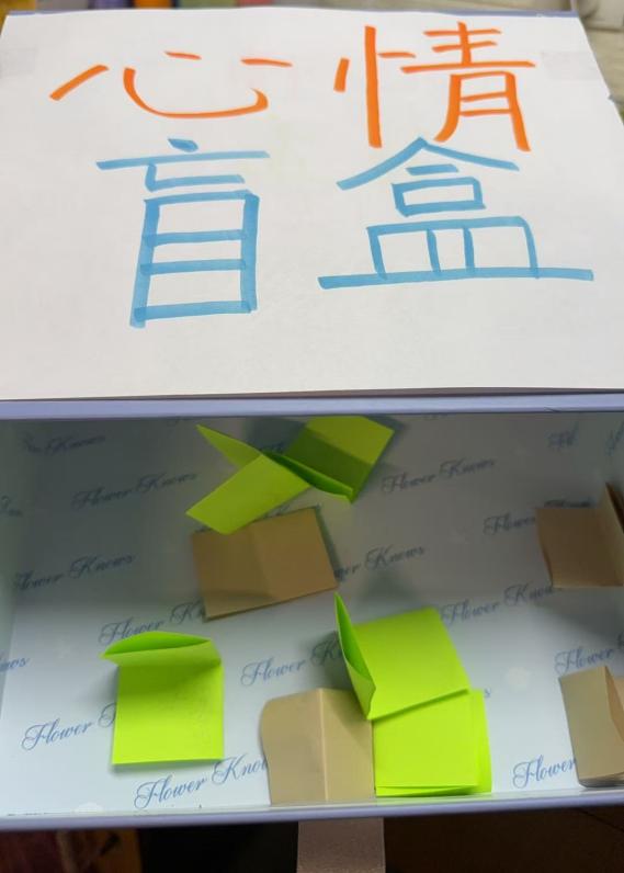 活动聚焦于营造安全、匿名的倾诉空间。A幢层长鲍水洪同学带领志愿者们精心布置场地,准备了统一规格的“心情盲盒”与空白纸条。同学们在舒缓的背景音乐中,卸下顾虑,以笔为舟,将平日难以言说的烦恼、压力、小确幸或期许,书写于方寸纸条之上。无论是学业的焦虑、人际的困惑,还是生活中的点滴温暖与憧憬,都被小心翼翼地折叠,封入匿名的盲盒中,如同将一份份隐秘的心绪托付给未知的善意。