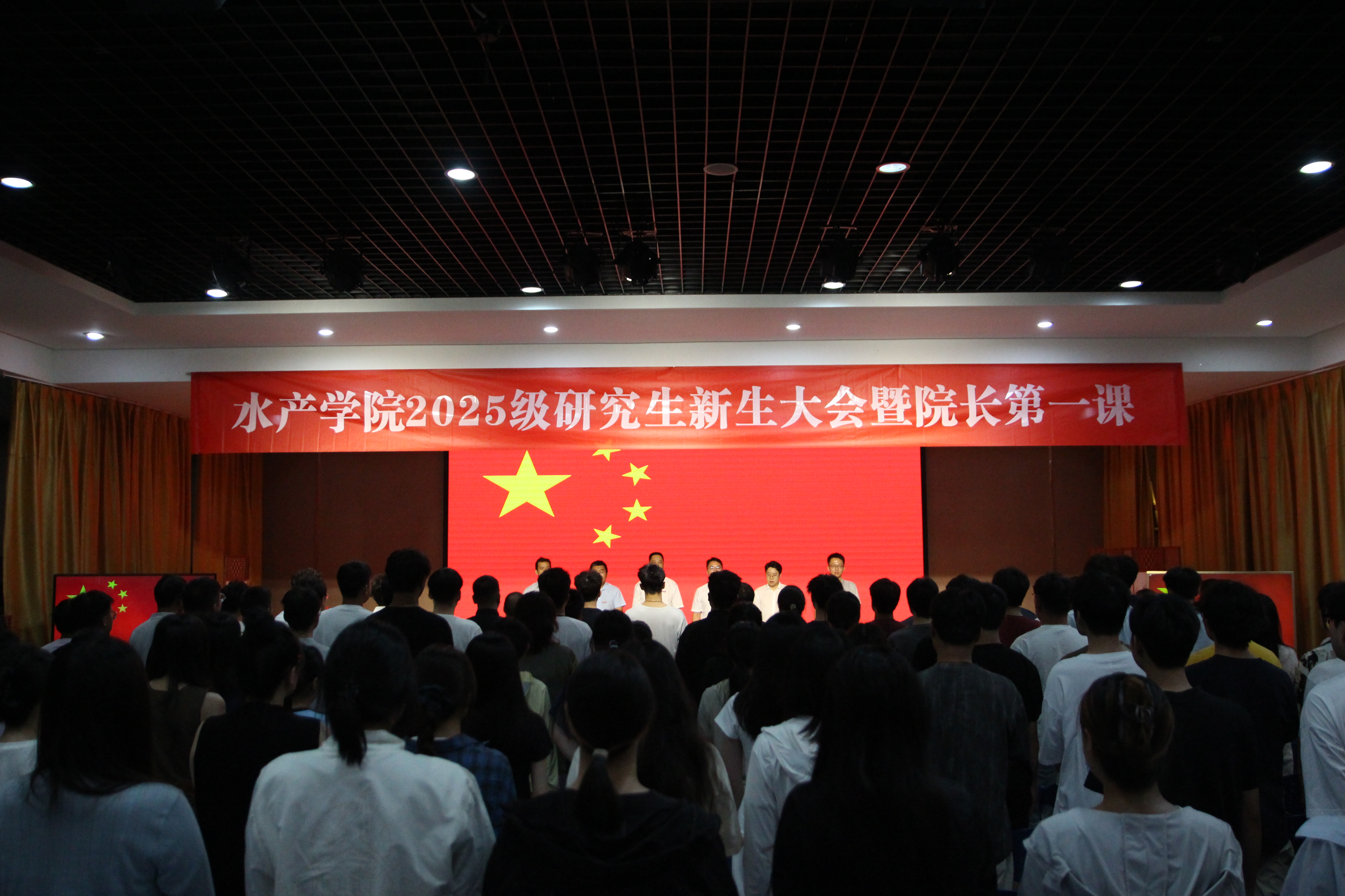 伴随着庄严激昂的《中华人民共和国国歌》,大会正式拉开帷幕。全体师生肃立注目,歌声中饱含着对祖国的赤诚热爱,也凝聚着水产学子投身海洋强国建设的坚定信念。