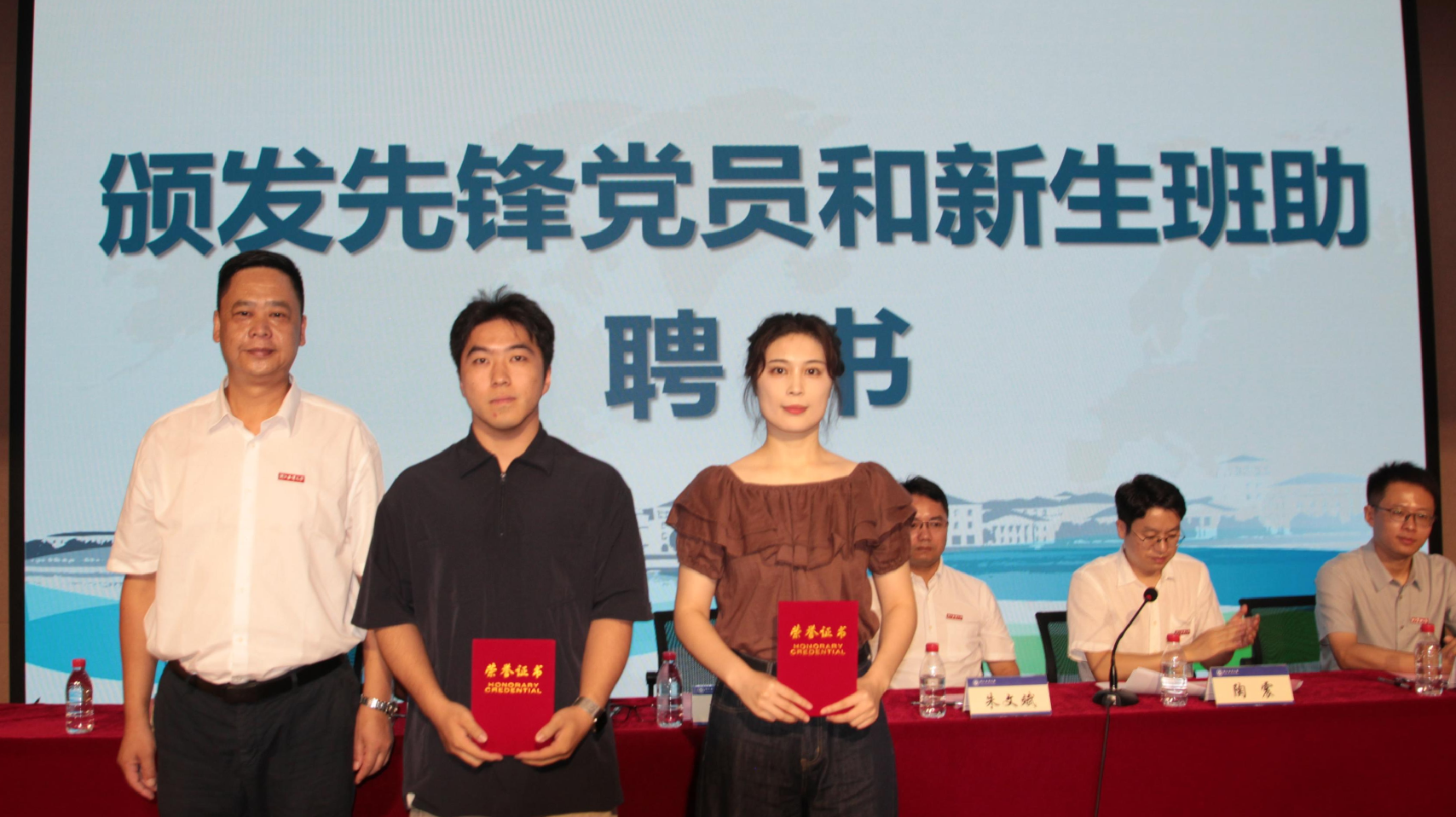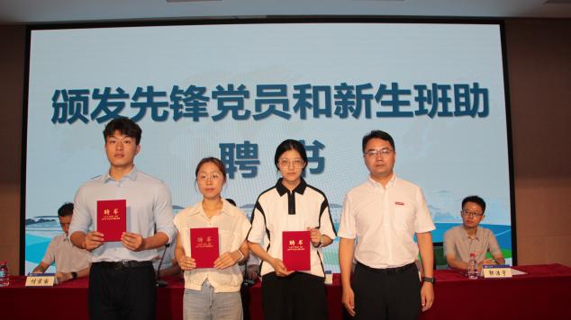 为发挥学术骨干带头作用,大会举行了新生先锋党员与新生班助聘任仪式。Y23渔业发展班王子琦、关冬玲与Y24渔业发展班路鹏、张妍妍、云梦楠5名同学获聘,助力新生更快适应校园生活。