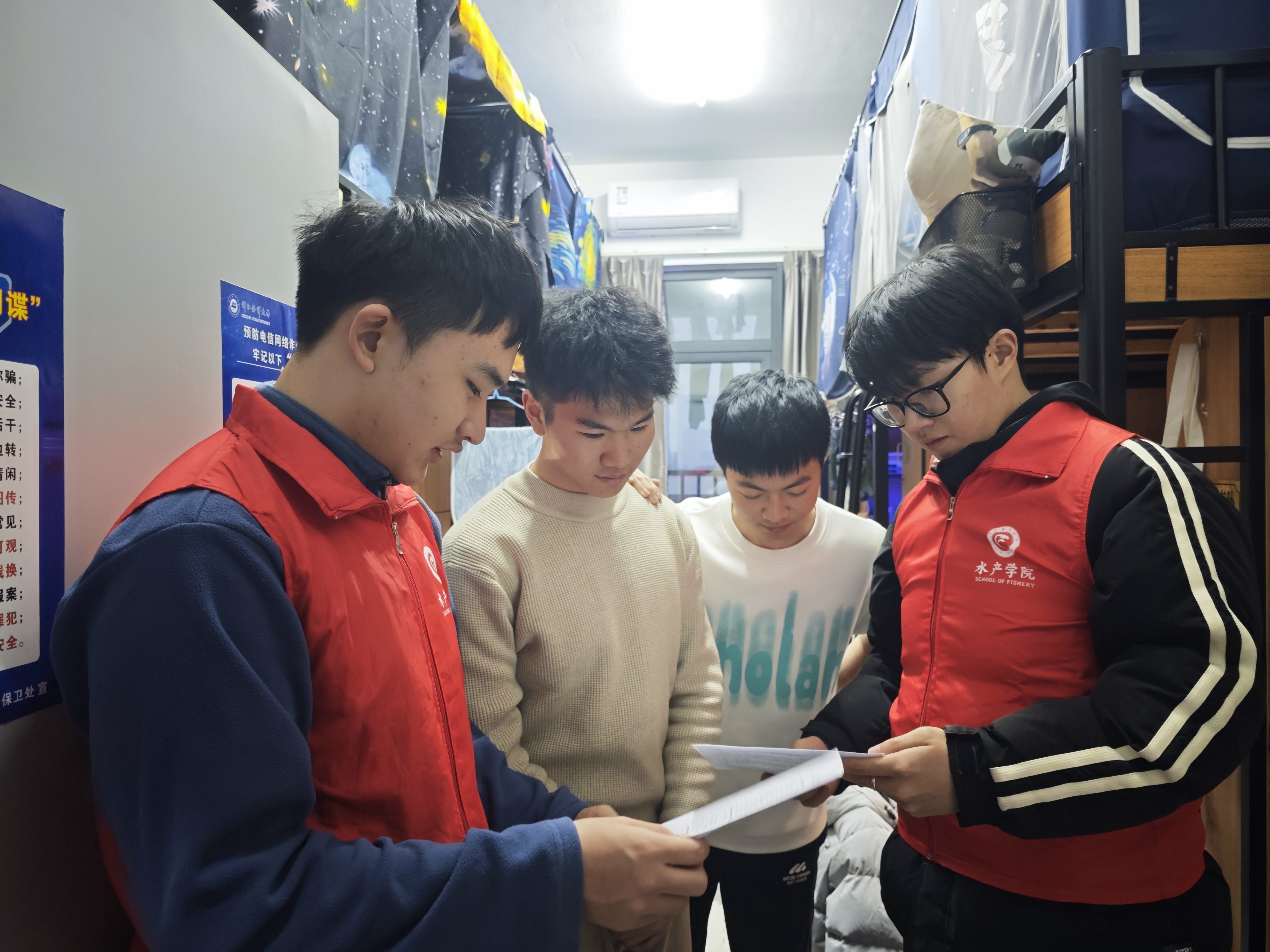 本次活动聚焦校园安全痛点,将反诈宣传与党员志愿服务深度融合。支部充分发挥“红色引擎”作用,组建“红帆反诈先锋队”,深入食堂、商业街、学生宿舍等场所,面向师生、后勤人员及商户开展“点对点”宣传服务。志愿者们结合水产学科特色,以“渔网密织反诈防线”为宣传标语,通过案例剖析、互动问答等形式,生动讲解刷单诈骗、冒充客服、游戏交易、校园贷等10类高发电信诈骗手段,并发放自制《反诈手册》,强化师生“未知链接不点击、个人信息不透露、陌生来电不轻信、转账汇款多核实”的“三不一多”防范意识。